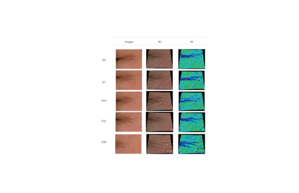 Significant reduction in wrinkle roughness and depth, with visible improvements in just 14 days. Sustained results prove Acetyl Hexapeptide-8's anti-aging efficacy.