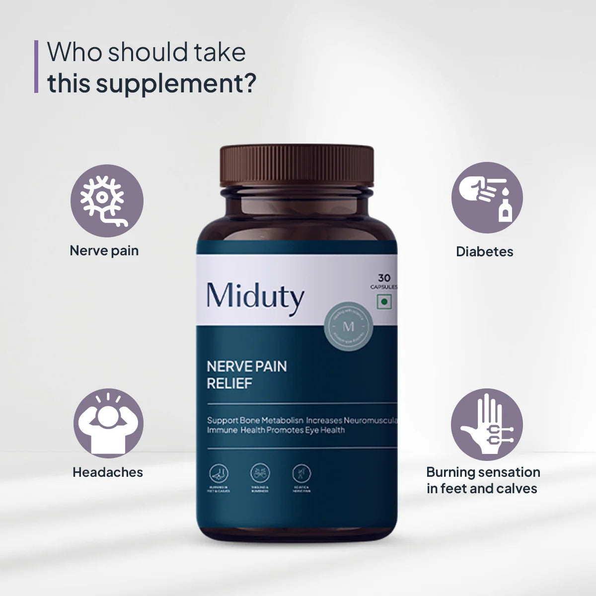 Unlike other products on the market, Miduty Nerve Pain Relief contains a stabilized form of R-Lipoic Acid. This stability enhances its potency and effectiveness, making it a superior choice for supporting nerve health and alleviating nerve pain.