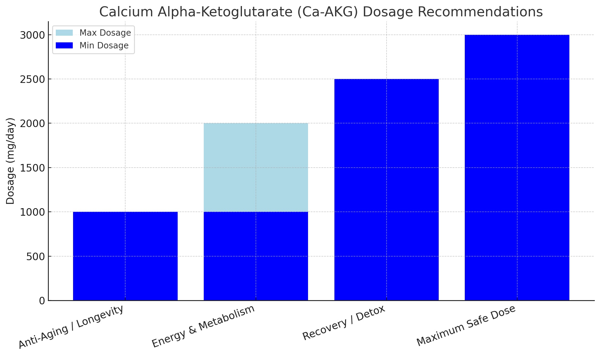 Ca-AKG is safe at doses up to 3 grams/day, though most users benefit from 1-2 capsules daily.