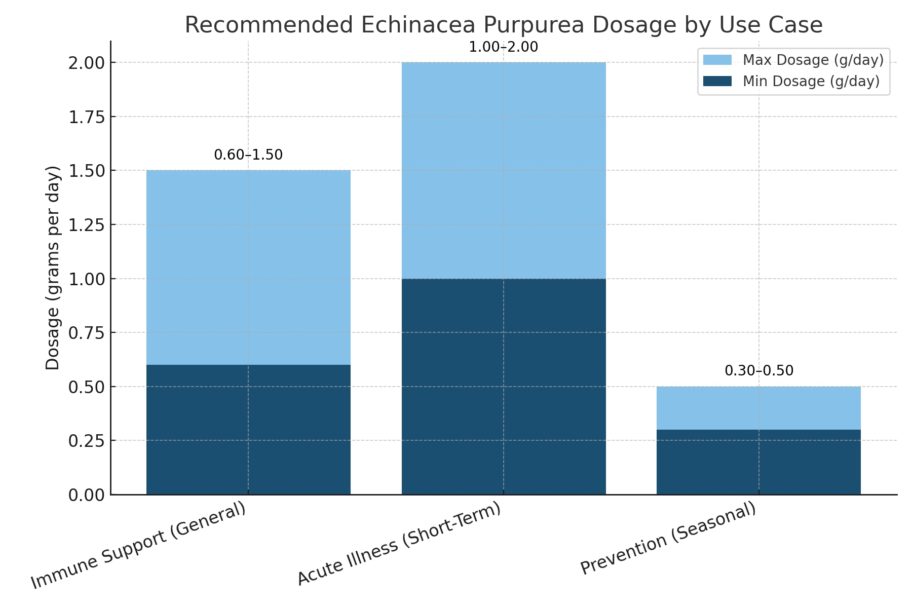 The ideal dosage varies depending on the product's concentration, but for a standardized Echinacea Purpurea Extract, the common range is: