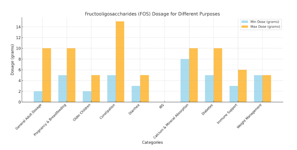 Pregnancy and Breastfeeding: FOS is generally safe during pregnancy and breastfeeding in moderate amounts from food. However, it's important to consult a healthcare provider before taking FOS supplements. Consuming 5-10 grams per day from food or supplements may help with digestive health and prevent constipation, a common issue during pregnancy.