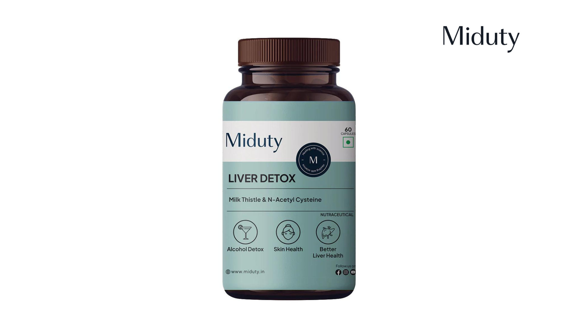 Miduty's Milk Thistle, present in their Liver Detox Supplement, offers a potent 400 mg dose with 80% silymarin extract, providing comprehensive benefits including anti-diabetic properties and support for kidney and brain health.