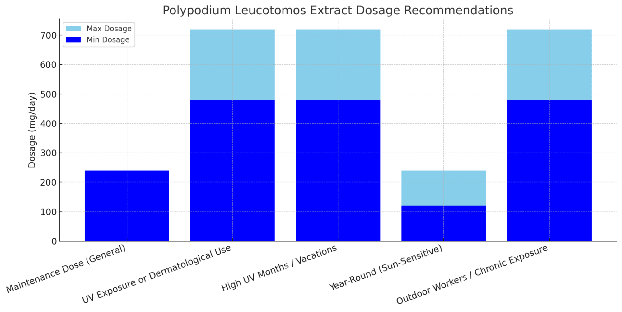 Taking Polypodium Leucotomos daily year-round can help reduce flare-ups, control inflammation, and minimize sun-triggered aggravation. Ideally: