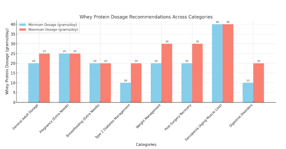 8) Digestive Disorders: Hydrolyzed whey protein is easier to digest and may be suitable in doses of 10-20 grams per serving, depending on tolerance.