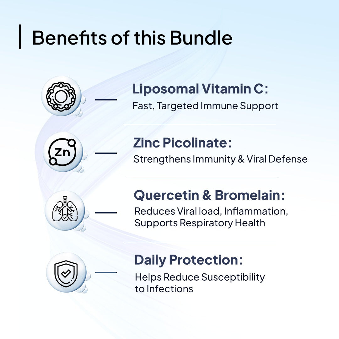By following this protocol, adults get consistent immune support, reduced viral replication, and controlled inflammation throughout the day. The combination of Liposomal Vitamin C, Zinc Picolinate, and Immune Shield helps boost recovery, maintain energy levels, and support respiratory and tissue health.