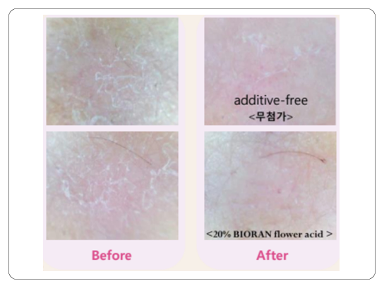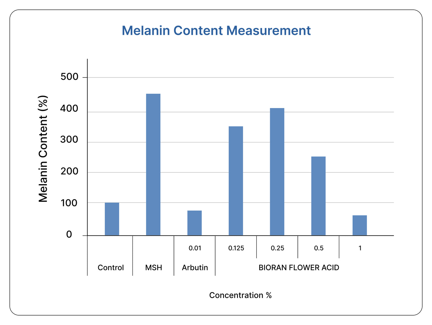 BIORAN Flower Acid significantly reduces melanin production, with the highest concentration (1%) showing the most visible brightening effect—ideal in the best face wash for glowing skin, supporting clearer, more even-toned skin over time.