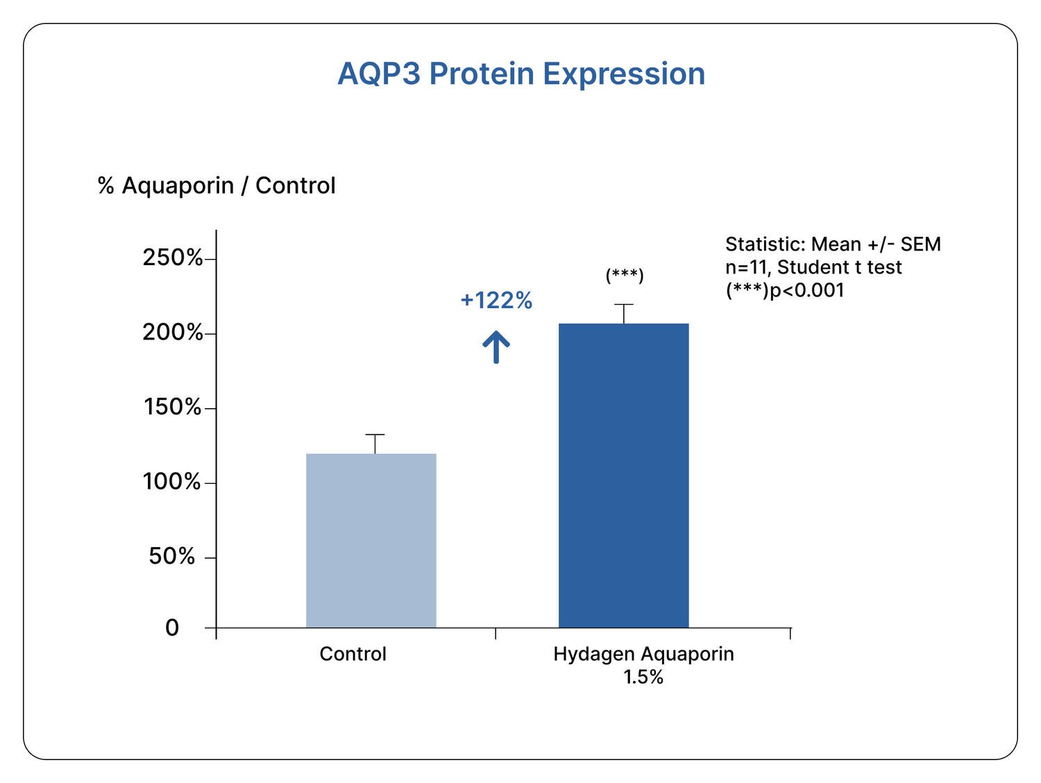 ⬆️ Aquaporin-3 expression (water channel protein) by 122%