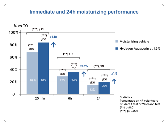 Hydagen® Aquaporin improves skin hydration by 81% within 20 minutes, ensuring your skin stays balanced and refreshed post-cleansing