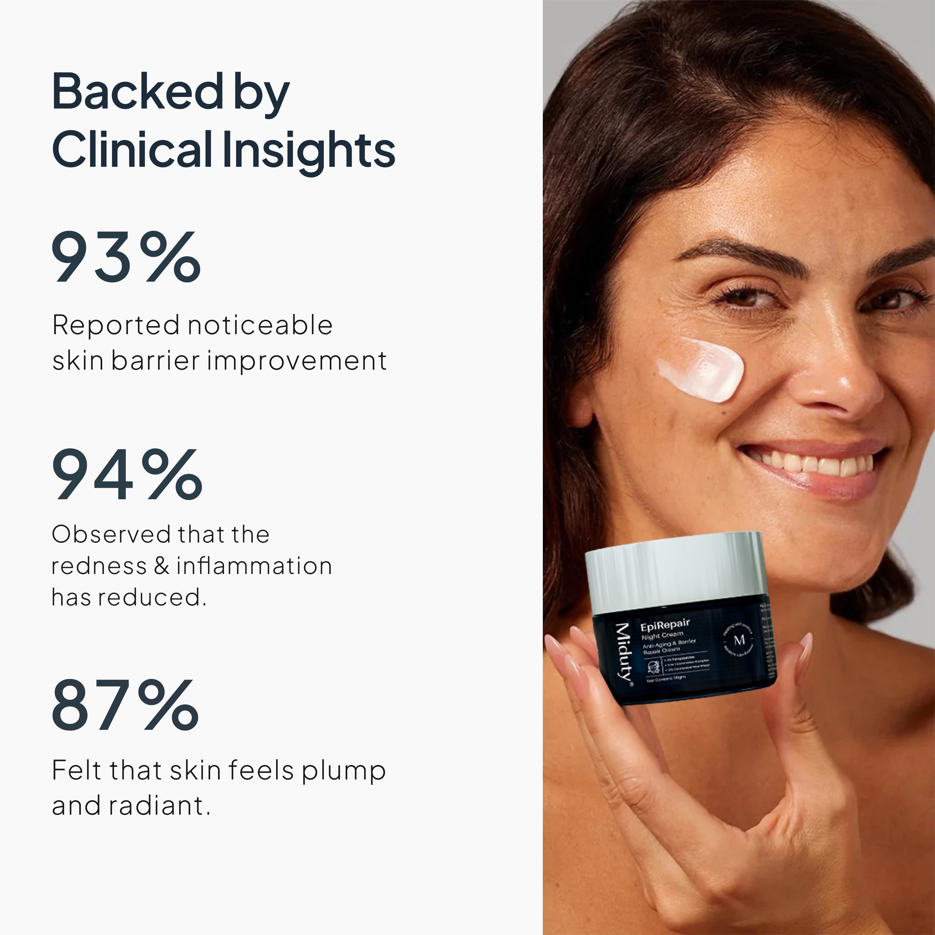 Follow with the EpiRepair Night Cream, which builds collagen while you sleep, supporting skin turnover and repair. This powerful night cream strengthens the skin barrier, thanks to peptides and ceramides, and repairs micro-damage caused by daily exposure to pollution and stress. Infused with fermented aloe, it also soothes and nourishes your skin, ensuring it wakes up hydrated, restored, and resilient.
