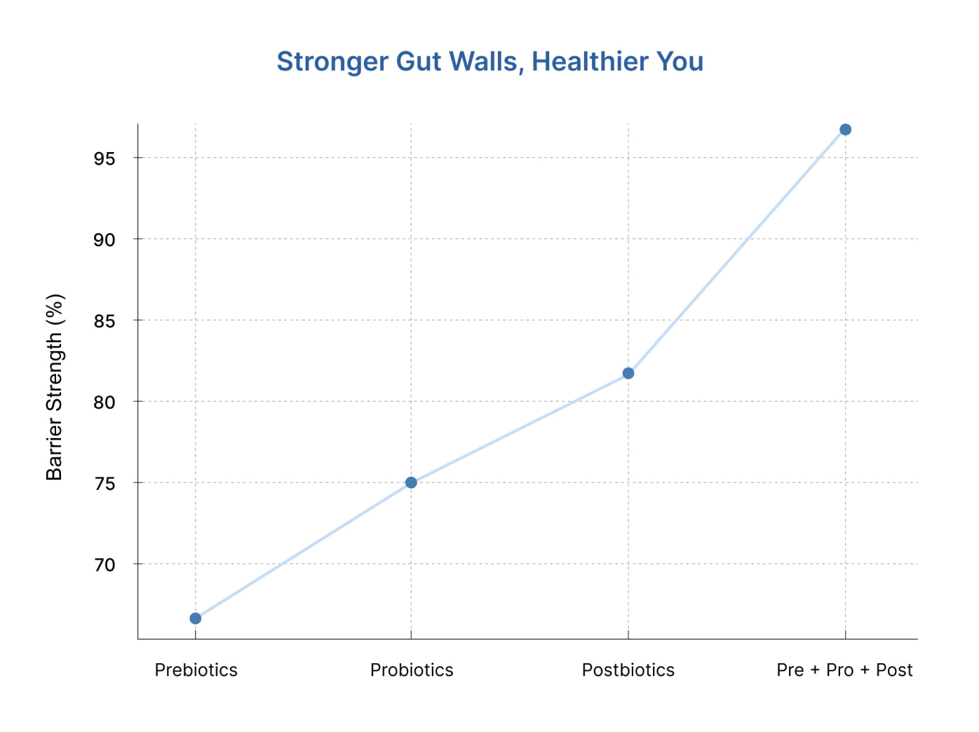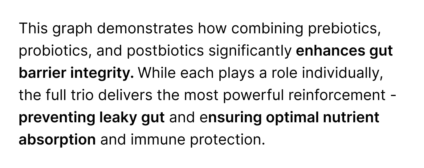 Prebiotics nourish and stimulate the growth of beneficial bacteria, ensuring a healthy environment in the gut. Probiotics recolonize the intestine, crowd out harmful pathogens, and enhance digestion. Postbiotics strengthen the gut barrier, reduce inflammation, and support nutrient absorption.
