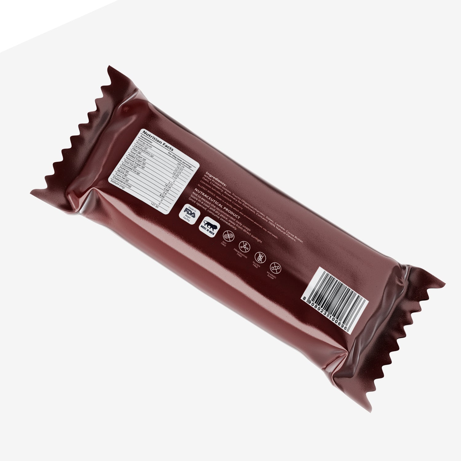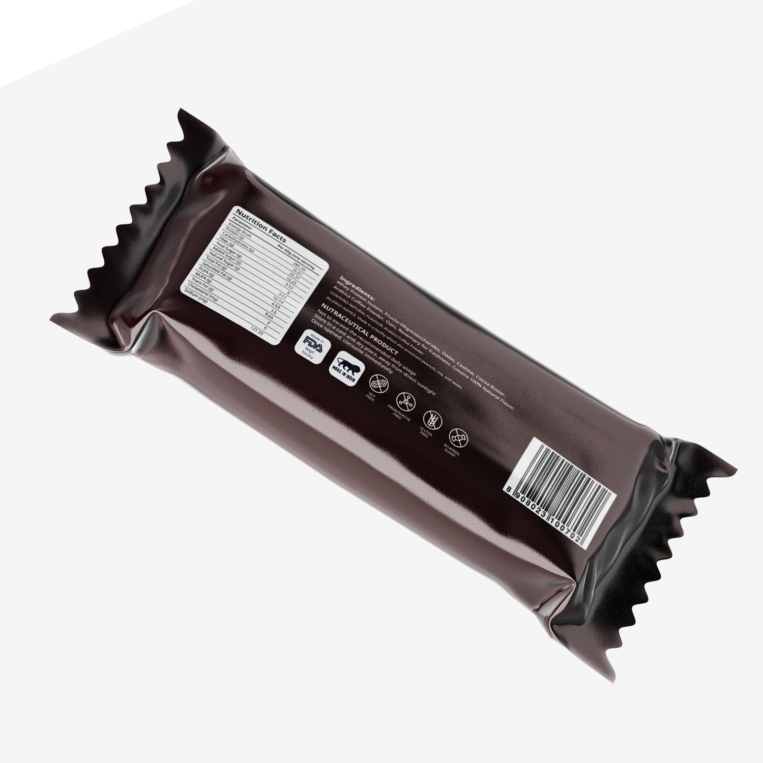 Each bite is loaded with nutrient-dense ingredients like whey protein isolate, dates, and cashews, and it's completely soy-free, gluten-free, and preservative-free, making it one of the best protein bars in India.