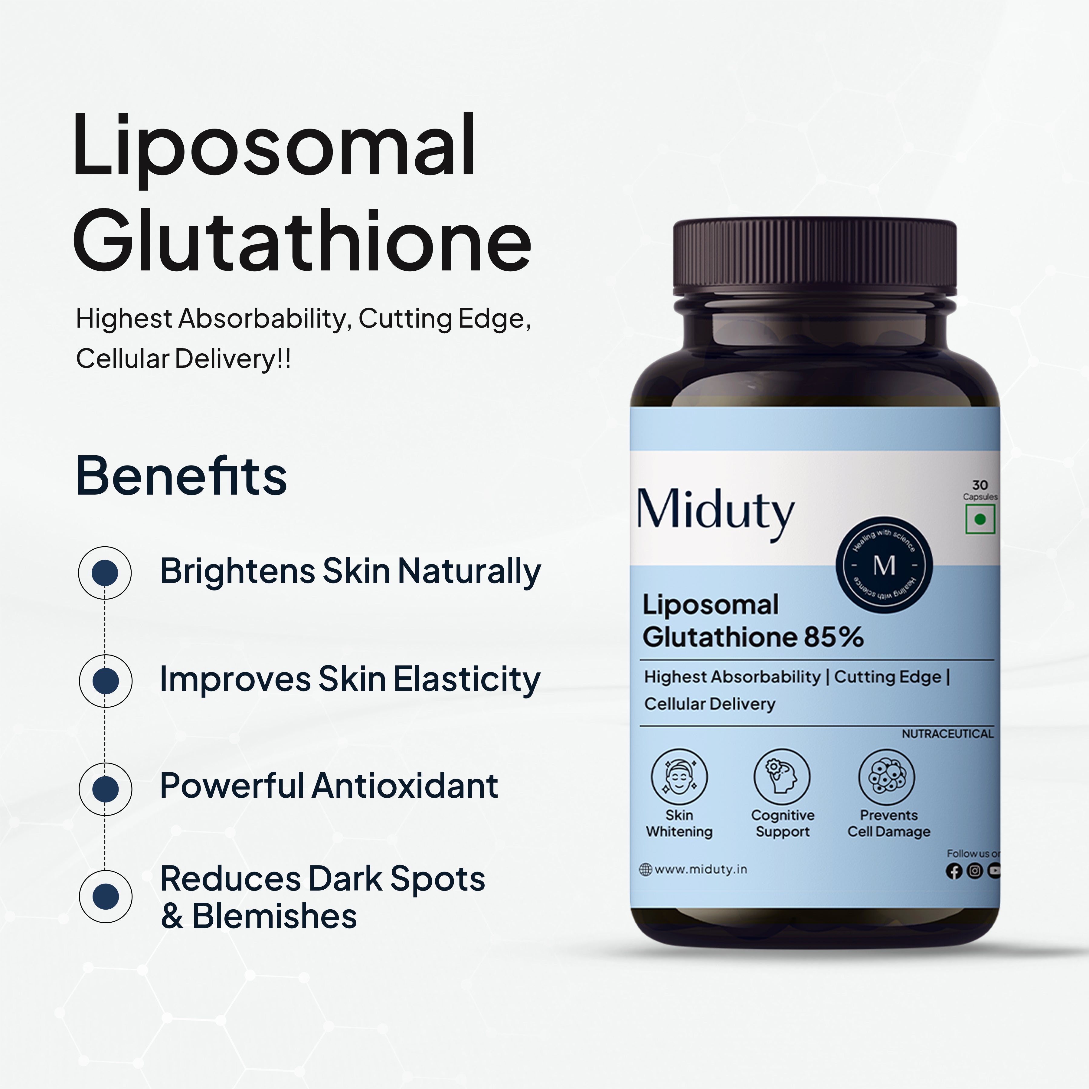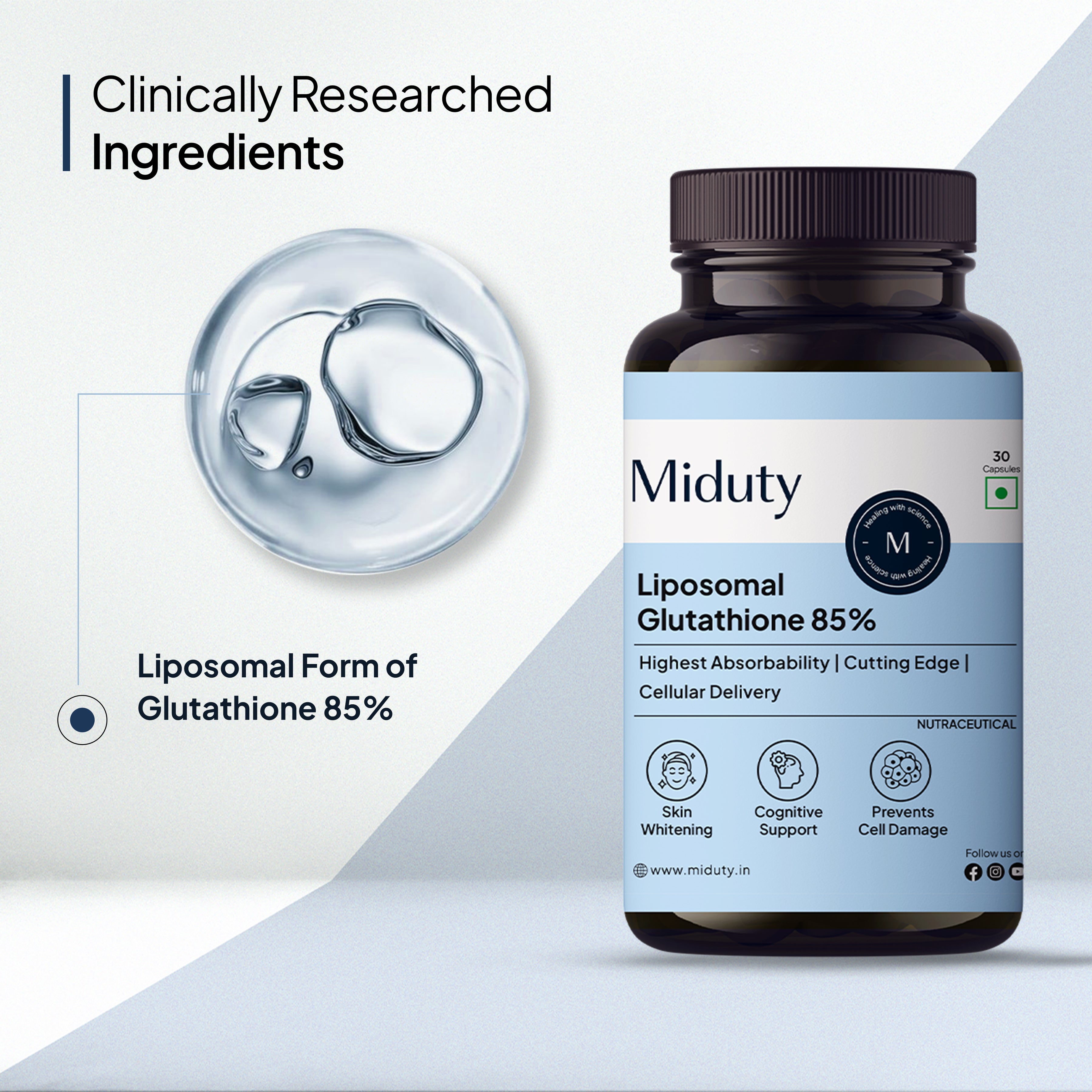 Glutathione works by fighting oxidative stress and reducing melanin production, which is responsible for dark spots and uneven tone. When taken consistently, Glutathione 85% helps detoxify your system, revealing brighter, clearer, and more even-toned skin.