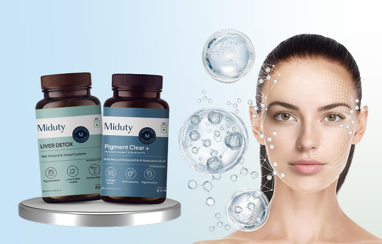 Your skin gets brighter when your liver gets lighter. Miduty’s Skin Glow Bundle is a structured 2-in-1 solution that pairs detox with pigment correction. We’ve built it on practical science, and you’ll see real-world results when you follow it right.