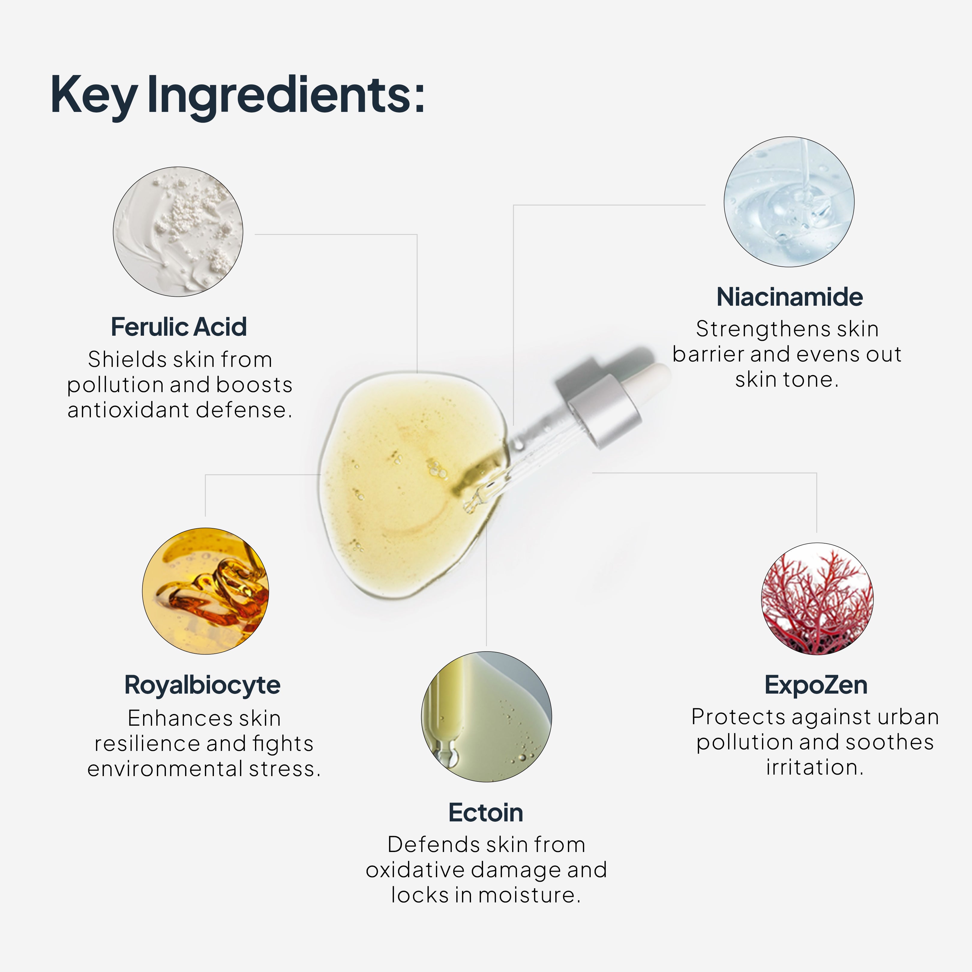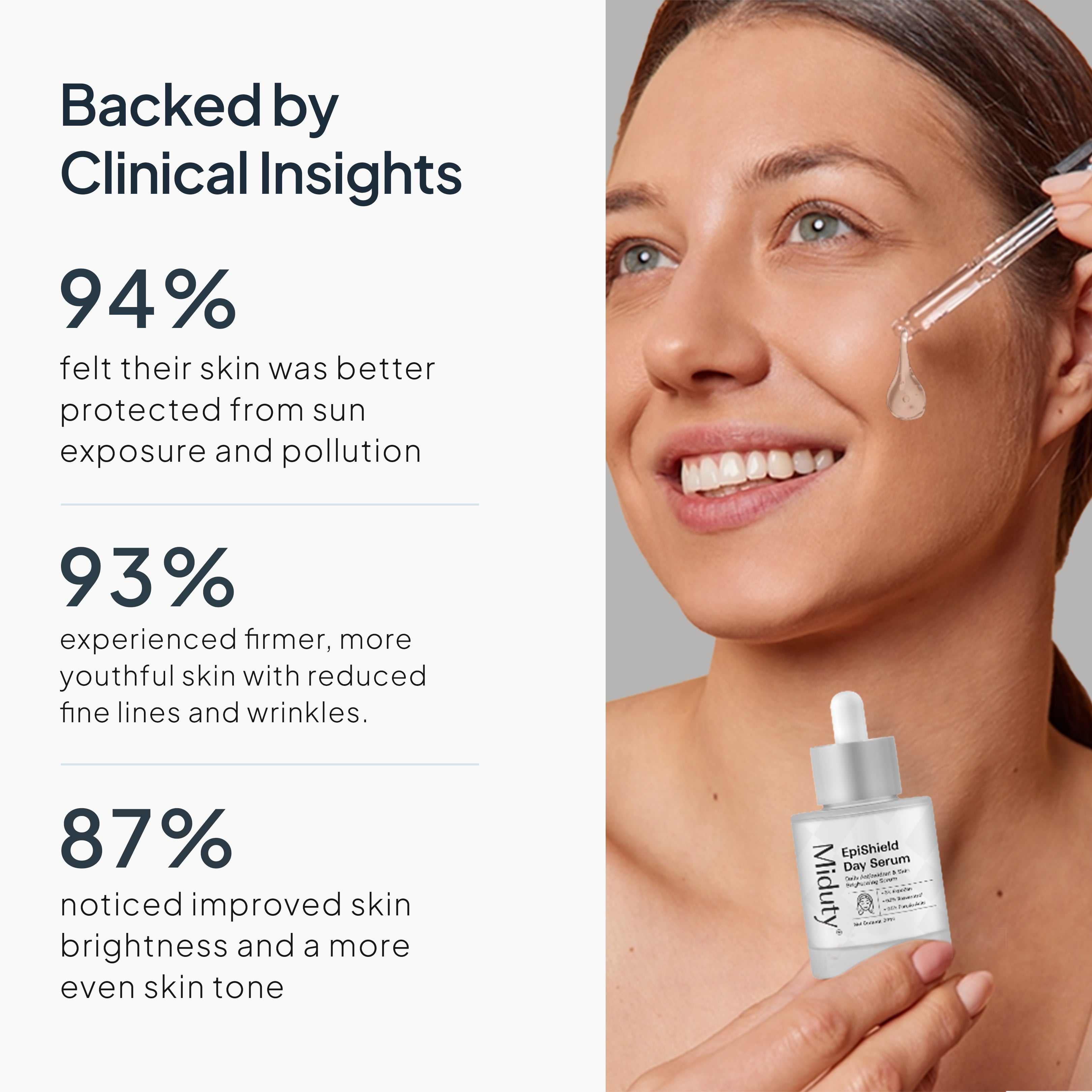Start with EpiShield Day Serum, a lightweight serum that delivers antioxidant protection and boosts your skin’s natural defense with Vitamin C and Resveratrol, fighting oxidative stress and pollution.